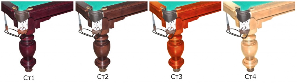 В базовой комплектации стол выполняется в четырех выкрасках: махагон (Ст1), темный орех (Ст2), корица (Ст3) и дуб (Ст4).