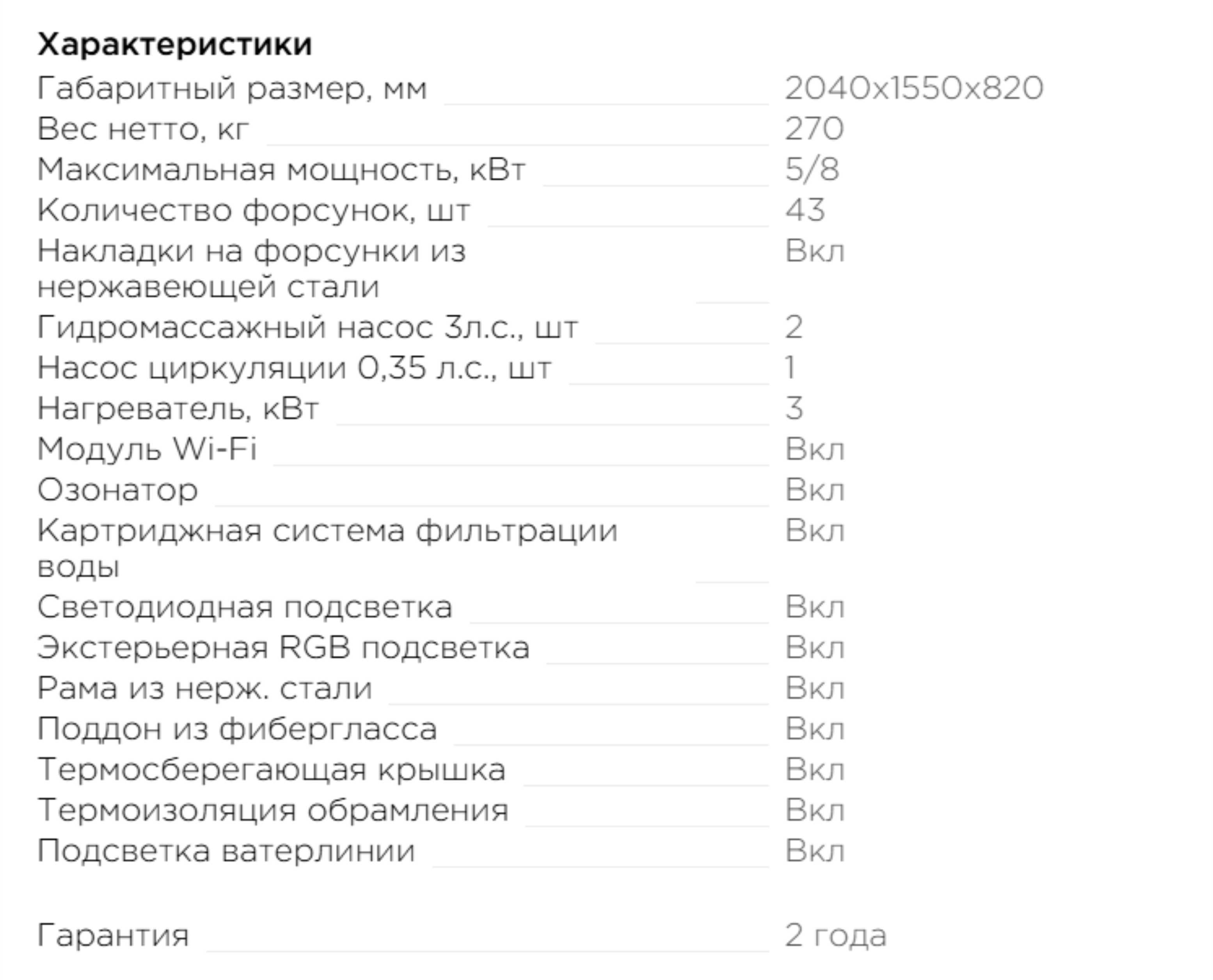 Спа-Бассейн Jazzi Pool Rome 335F оснащен 43 мощными форсунками, 3кВт нагреватель, Каскадный водопад, стильные накладки форсунок из нержавеющей стали и дополнительное утепление, которое позволит пользоваться этим спа-бассейном даже на улице в отрицательную температуру.