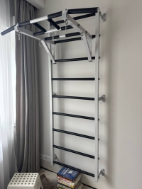 Отличная шведская стенка! Установил её в квартире, и теперь у меня есть возможность заниматься в любое время. Крепления действительно надёжные, и вся конструкция выглядит очень устойчиво. Я даже не ожидал, что она выдержит мой вес, а она справляется с нагрузкой без проблем. Единственное, что немного смущает - это установка, понадобилась помощь. Но в целом, я очень доволен!
