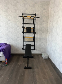 - Надежная стальная конструкция , которая выдерживает до 250 кг. Вылет от стены 47 см - это идеальный вылет, так как в некоторых упражнениях требуется смещать корпус тела вперед, и при таком вылете Вы не будете касаться ногами шведской стенки.
