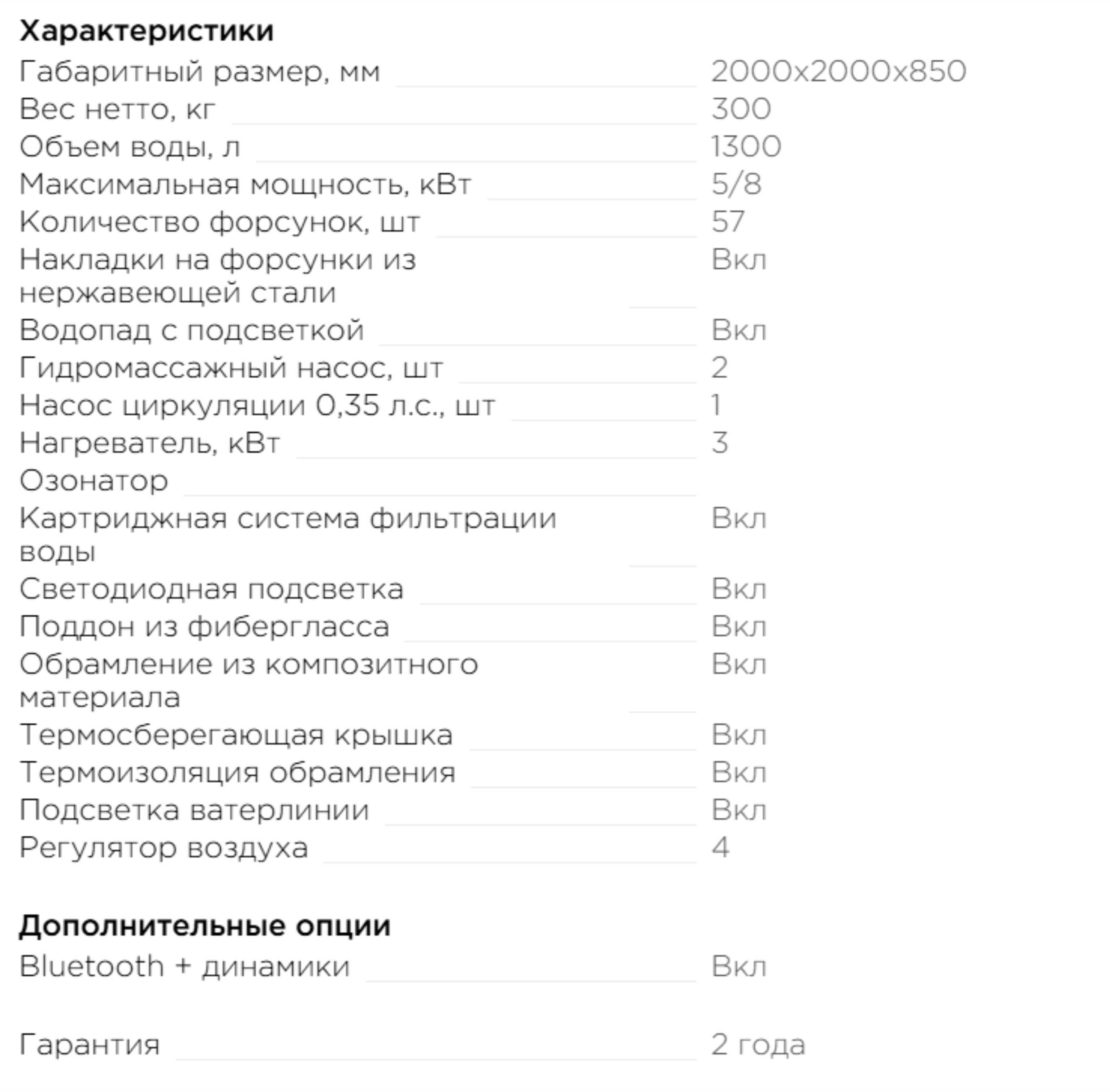 На все изделия поддерживается низкая стоимость от производителя. Например, на такой товар, как уличный джакузи с подогревом jazzi pool 329a1 capri, цена составляет всего 955 008 руб. рублей. И это не акция в рамках распродажи, а обычный прайс, актуальный, в том числе, для розницы. Артикул изделия .
