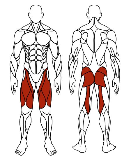 Тренажер задействует ягодицы, мышцы передней поверхности бедра, мышцы задней поверхности бедра, мышцы голени, стопы.