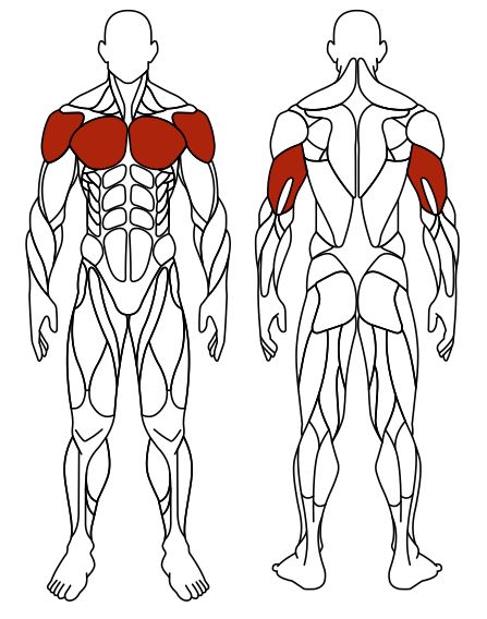 Укрепляет большую грудную и малую грудную мышцы, трицепс и дельтовидные мышцы.